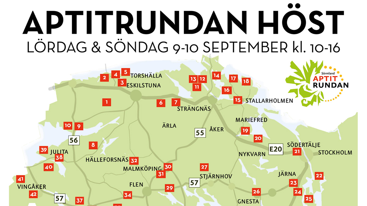 Helgen 9 – 10 september har du chansen att uppleva det bästa av sörmländsk mat! För trettonde året arrangerar Sörmlands Matkluster Aptitrunda runt om i Sörmland.