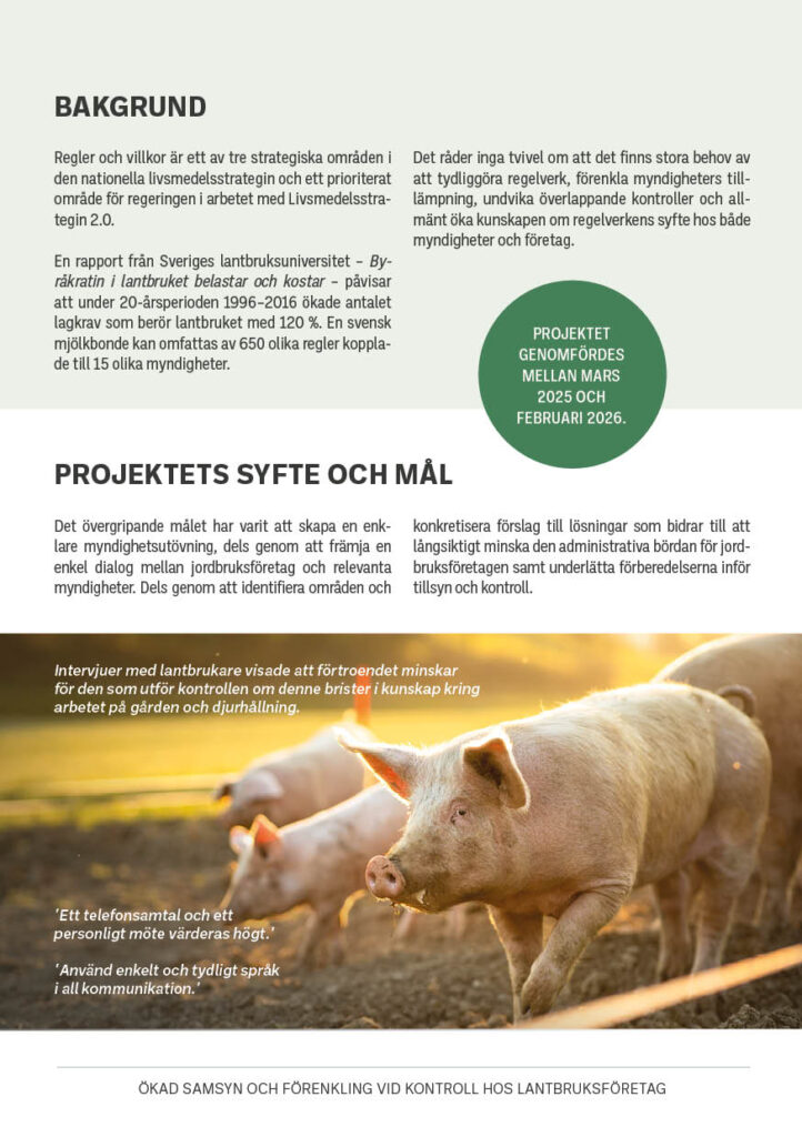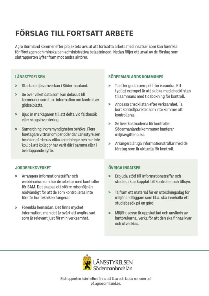 I februari avslutades Ökad samsyn och förenkling vid kontroll hos lantbruksföretag, ett uppdrag från Länsstyrelsen i Södermanland.